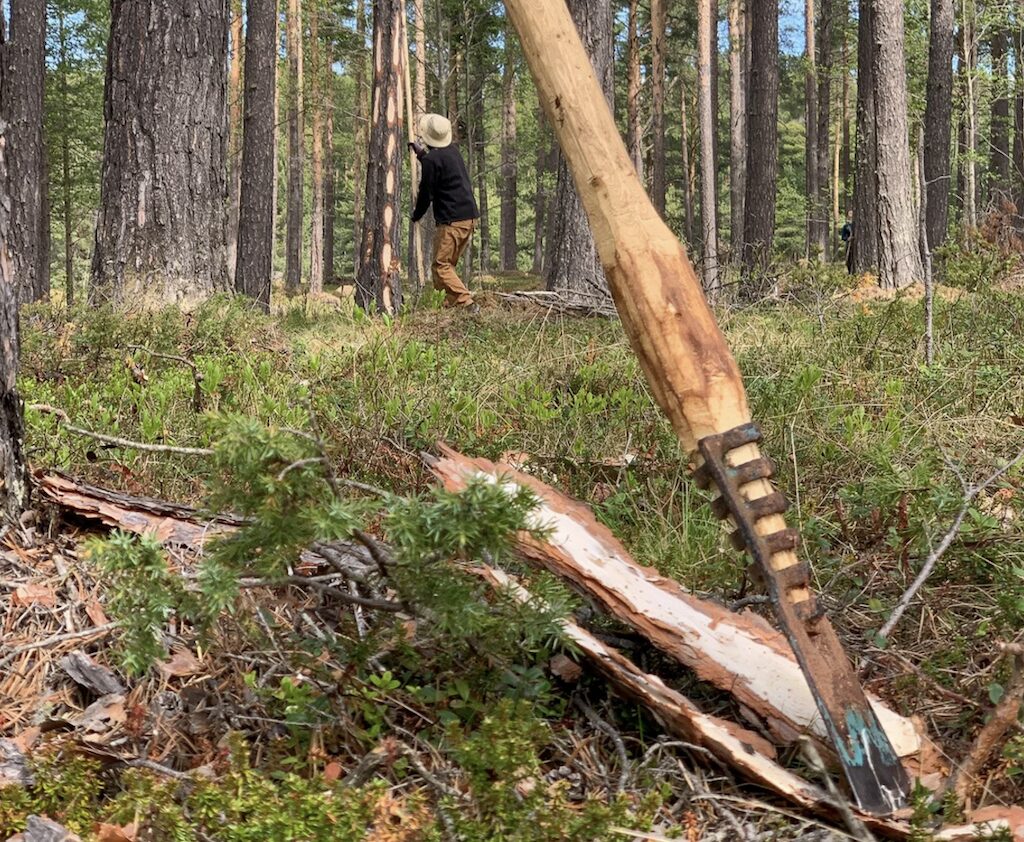 På Hjerleid handverksskole gjennomføres nå et praktisk prosjekt der flekkbarking prøves ut på utvalgte trær for å dokumentere effekt, metode og bruk i moderne håndverk.