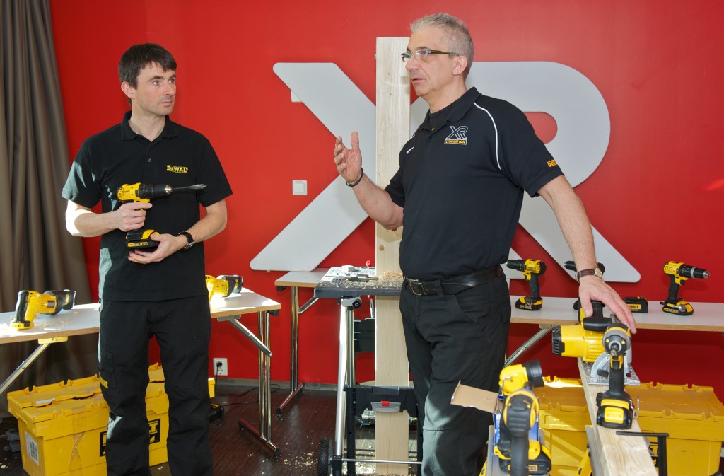 Til å presentere sine nye XR-maskiner hadde DeWalt hentet opp fra Göteborg opplæringsansvarlig for Norden Ulf Ohlsson (t.h.), assistert av Lars Ivar Tveten fra DeWalt i Norge.