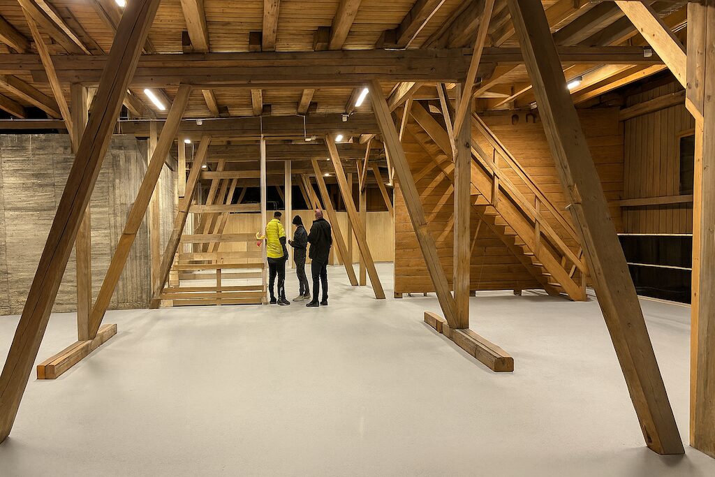 VÅGSBYGD: – Vi har ikke vært borti kombinasjonen limtre og hulldekker før. Det gjør Lumber 5 spesielt, sier Anders Tellefsen og Thomas Roland Buene i Veidekke Bygg.