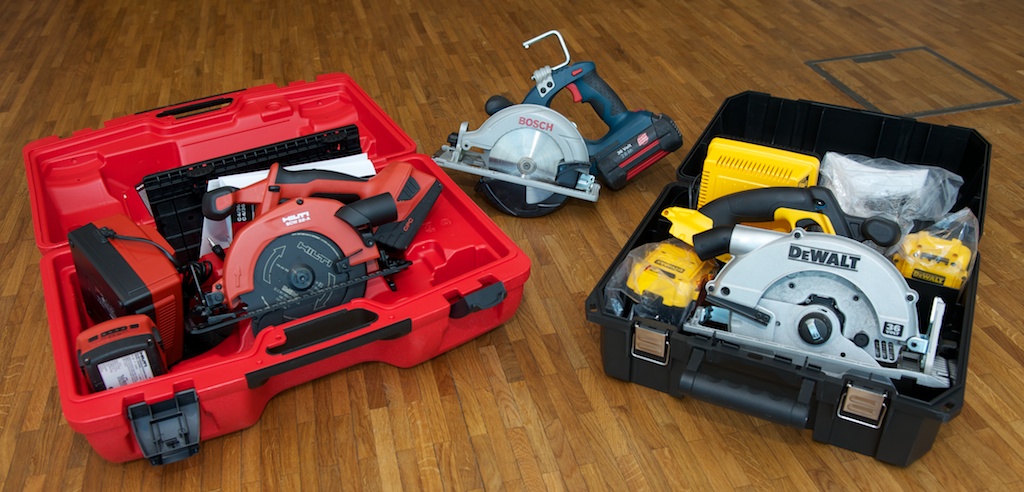 De fire sagene som er med i testen er Bosch GKS 36V-LI Professionel, Hilti SCW 22-A, DeWalt DC 300 KL og Milwaukee HD28 CS. De ulike sagene har ulik voltstyrke, men hva betyr det? Bosch og DeWalt kommer med 36 volts batteri, Milwaukee med 28 volt og Hilti med 22.