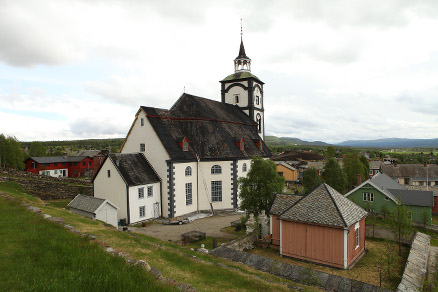 Legg merke til de lysebrune flekkene på taket, der ligger de nye sponene. Røros kirke – eller Bergstadens Ziir som den også kalles – er rangert av Riksantikvaren som en av de ti mest verneverdige kirkene i Norge.