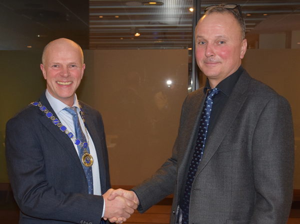 Nyvalgt leder Einar Johansen gratuleres med valget av avtroppende leder Pål Øye.