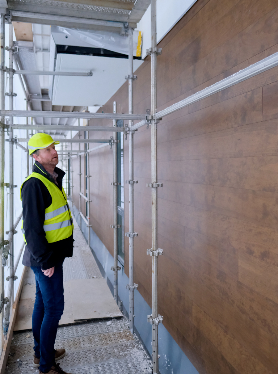 – Vi gleder oss til å få ned stillasene og se kledningen skinne i vårsola