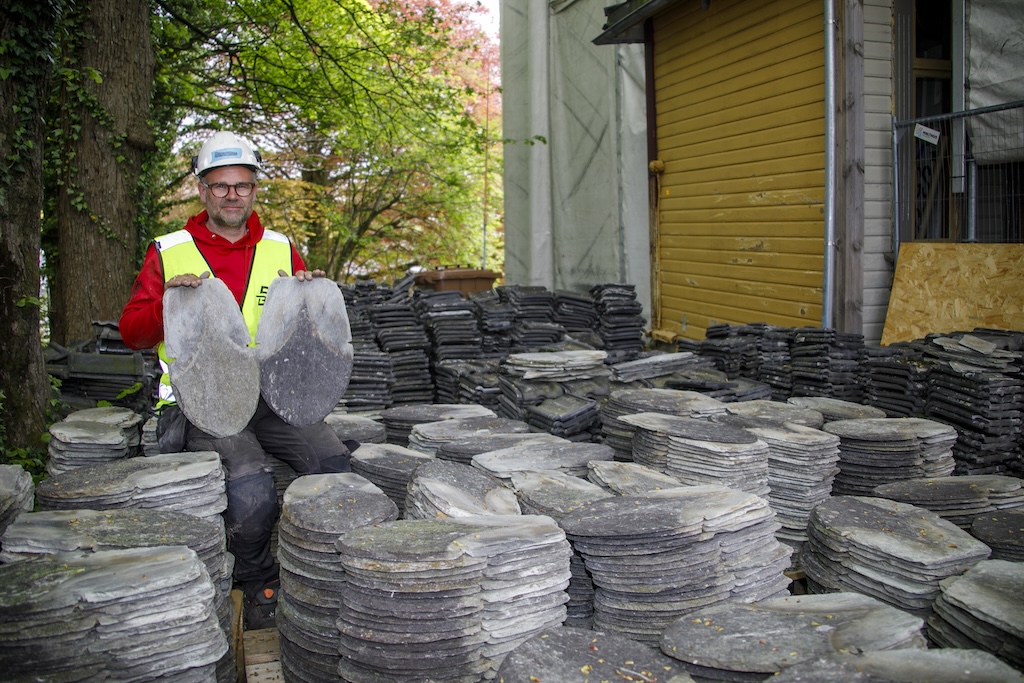 Planen var å gjenbruke mesteparten av den opprinnelige skiferen. Slik blir det likevel ikke.