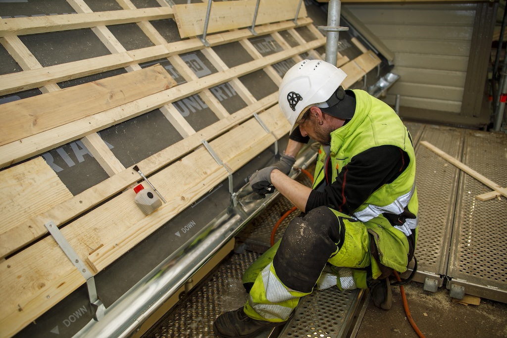 – Diffusjonsåpen papp er ikke laget for å stå ute. Den tåler ikke UV-stråler. Ved å bruke tak-over-tak øker vi levetida til den diffusjonsåpne pappen, sier han.