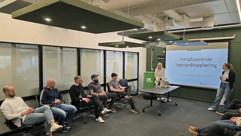 – Vi har brukt tid på å lære norsk tegnspråk sammen. Det har gitt oss bedre kommunikasjon og samarbeid og det er helt avgjørende siden vi jobber som ett lag på byggeplassen, forteller Fredrik.