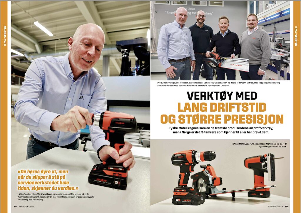 I månedens tema kan du lese mer om driftssikkert håndverktøy fra tyske Mafell, blikkenslagerbedriften som har gått over til legge tekkingen rett på treverket, hvor mye et eksoskjelett hjelper tømrere på jobb og du får lønnsomme verktøytips av tømrer Alxander Bora Fra Tromsø.