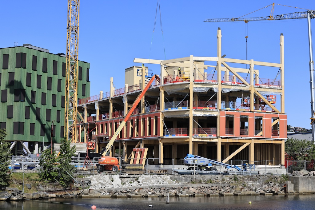 Konstruksjonen til kontorbygget Lumber 5 utenfor Kristiansand er en hybridløsning, der tre og hulldekker kombineres. For Veidekke Bygg er det en ny erfaring.