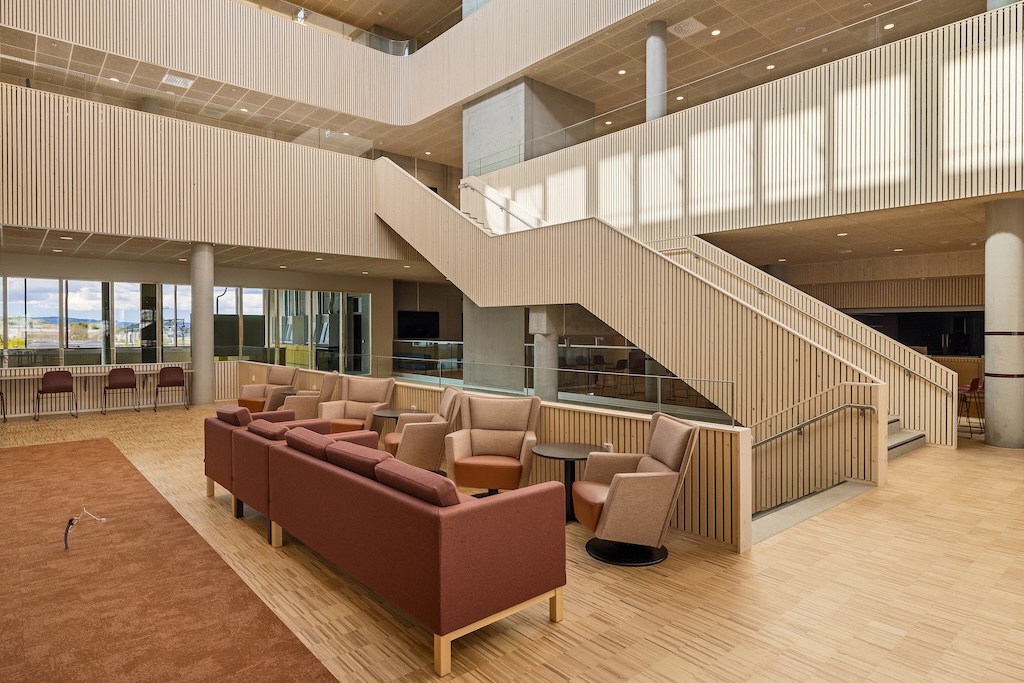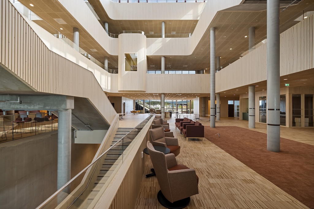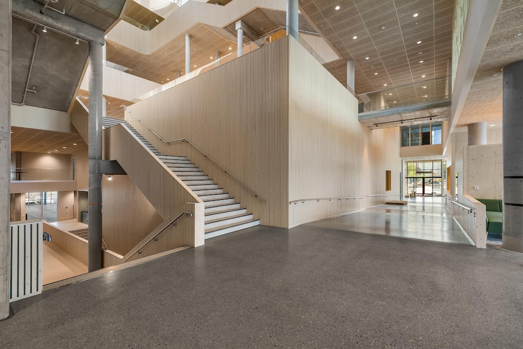 Med treverk fra Vyrk har bygget fått en tidløs og nordisk karakter, som harmonerer med både verdiene og visjonen bak prosjektet.