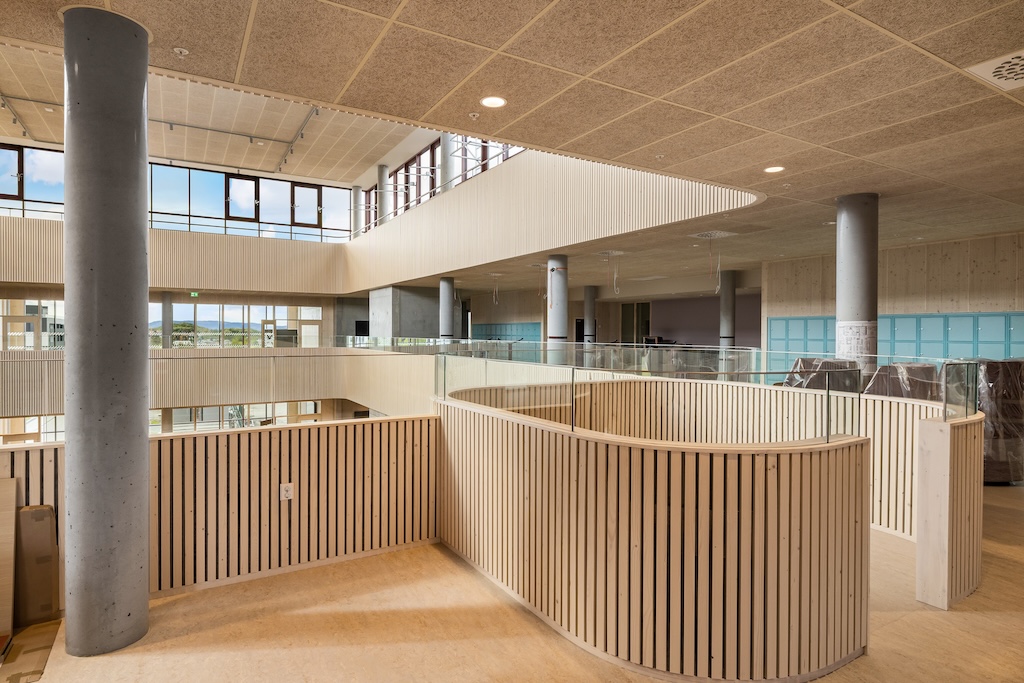 Med presise leveranser, lokal produksjon og lang erfaring med brannbehandlet treverk, har Vyrk vært en viktig bidragsyter til å virkeliggjøre ambisjonene om en skole med varme, naturlige overflater og tydelig materialidentitet.