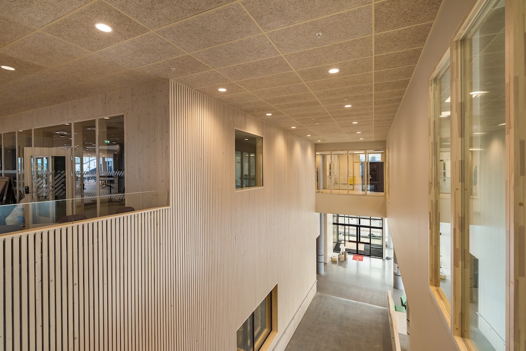 – På Cissi Klein har Trøndelag Fylkeskommune valgt å bruke overflater av høy kvalitet. Valget falt på utstrakt bruk av granspiler og tresjiktsplater av gran, forteller Rune Braa, arbeidsleder i Veidekke.