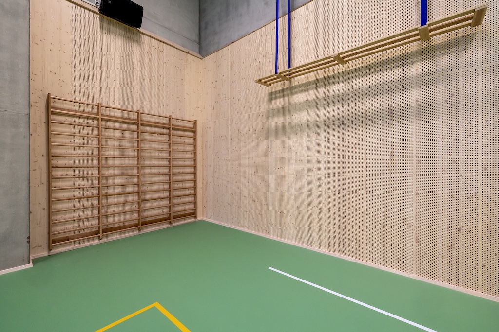 Allerede fra prosjektets oppstart var det et tydelig ønske om å bruke naturlige og bærekraftige materialer med høy estetisk kvalitet. Valget falt på gran, både som spilemoduler og tresjiktsplater, brukt i stor utstrekning gjennom hele bygget.