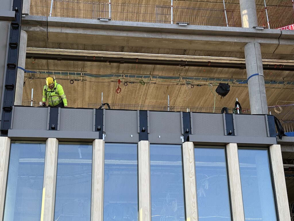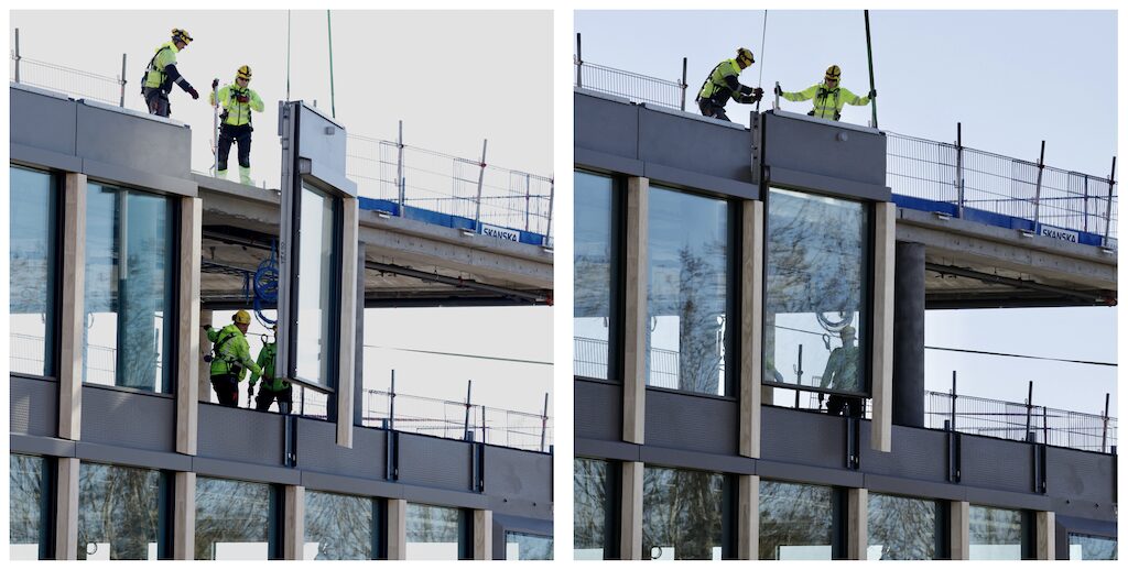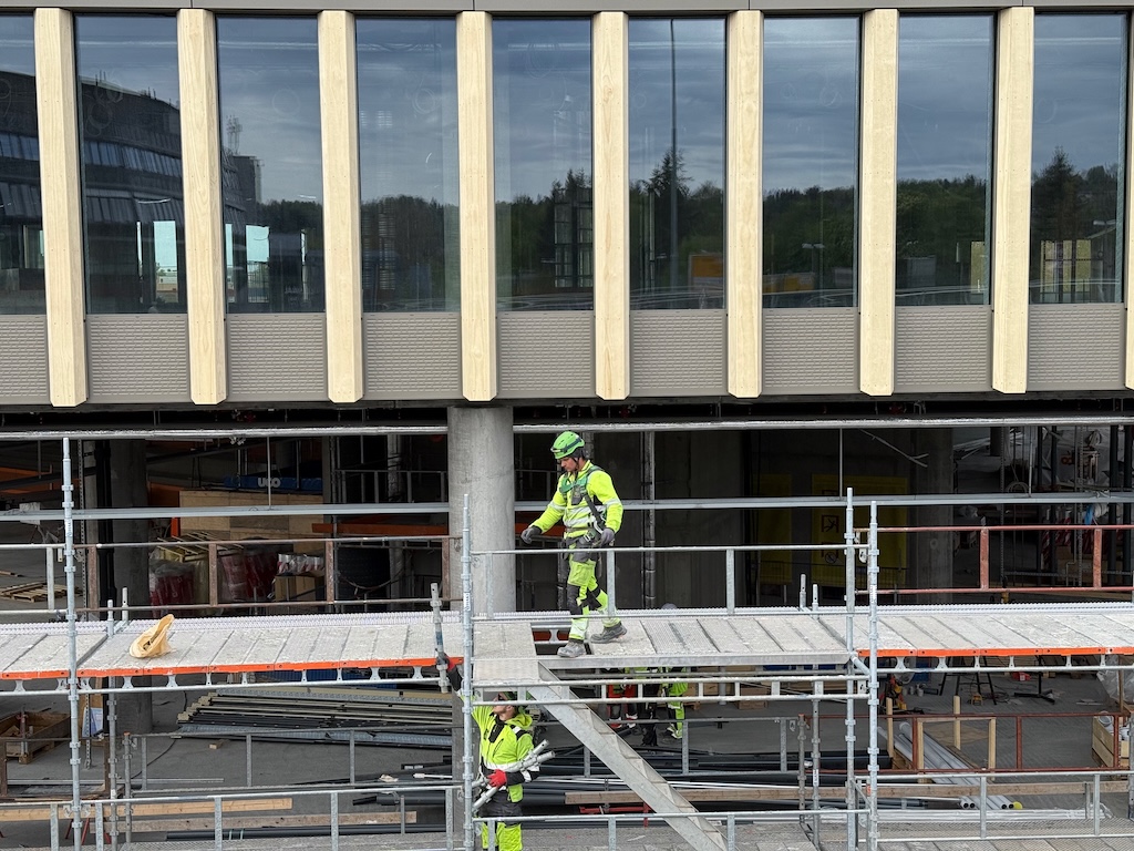 I tillegg til fasadene arbeider Skanskas egne tømrere med takkonstruksjoner og tekniske kasser. Det er lagt opp til en fremdrift der ulike fag kan jobbe parallelt uten å vente på hverandre.