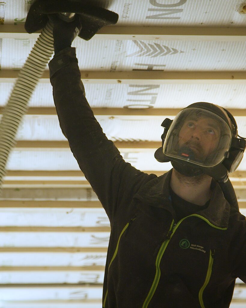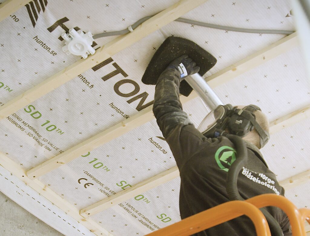 – Prosessen med blåseisolering fungerte veldig bra. Tekniske fag kan gjøre ferdig alt av skjulte anlegg før bygget er helt tørt. I tillegg sparer vi oss for isolering av fem-centimeteren på innsiden, som sparer oss for både tid og arbeid. Og så er det mye mindre avfall med blåseisolering kontra vanlig plateisolering, sier Bergan.