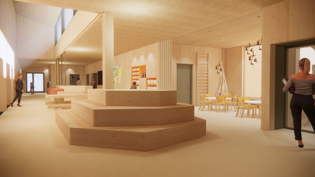 Kontrakten omfatter totalleveranse av ny skole, fra detaljprosjektering til levering og montering av fast inventar og opparbeidelse av uteområde. Skolebygget utføres i sin helhet i massivtre.