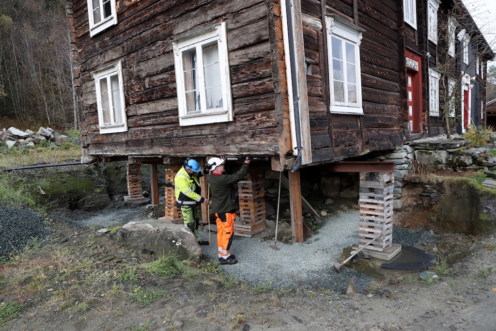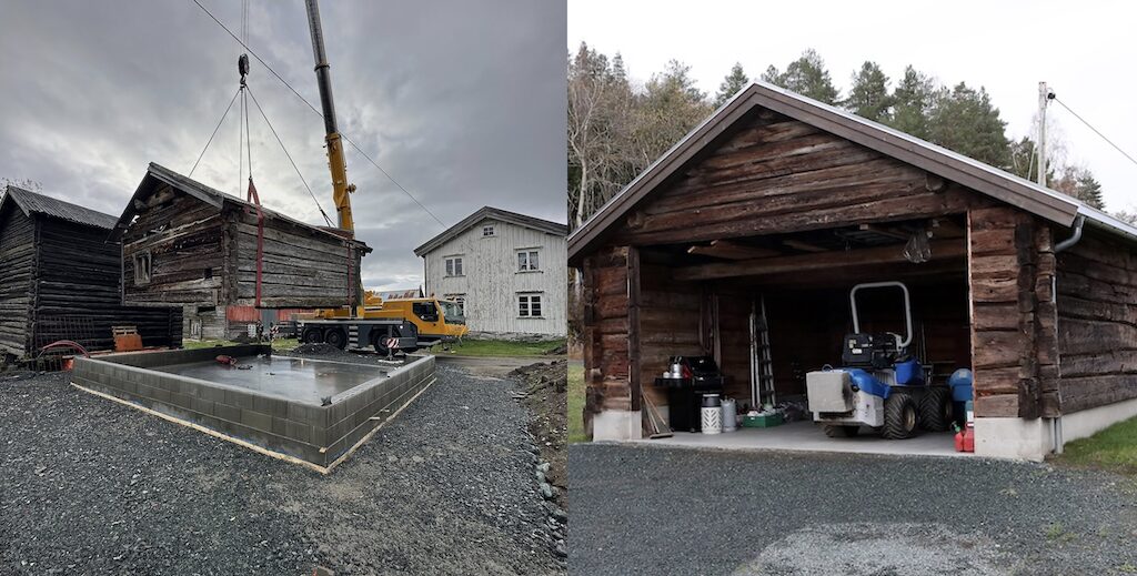 - Det gamle stabburet er satt på nystøpt plate og fått nye føtter.
