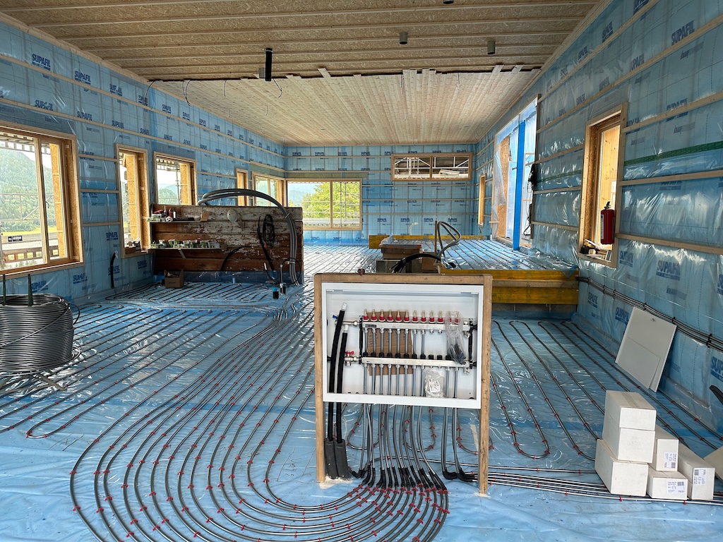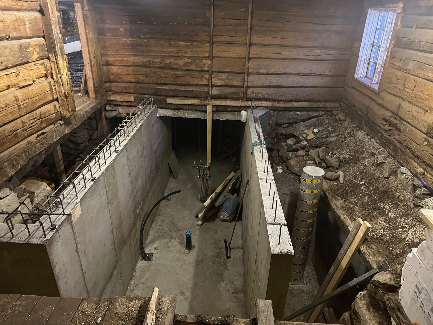 – Vi støpte gulv og la rør for vannbåren varme i gulvet i kjelleren. Huset får bergvarme. Deretter støpte vi nye vegger på innsiden av natursteinveggene, og bærevegger. Det er blitt selvbærende etasjeskille i betong, med ekstra armering-forsterkinger enkelte steder, sier Rise.