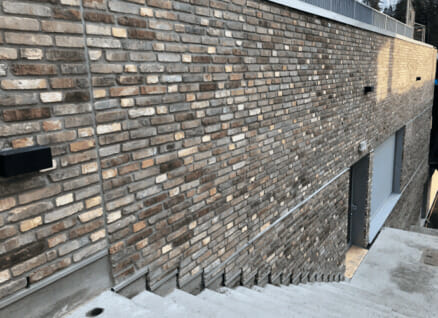 – Ved å sage murstein i skiver, får vi fire ganger mer fasadeareal ut av hvert tegl. Dessuten bidrar systemet til lavere vekt og forenklet montering og demontering sammenlignet med tradisjonell teglforblending. Vi tar samtidig vare på mursteinens vakre og varige kvaliteter, sier Tyssø.