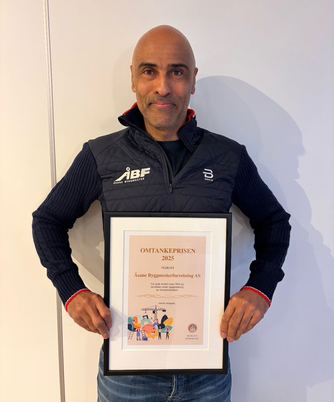 Formann Kenneth Hope i Åsane Byggmesterforretning med Omtankeprisen 2025. (Foto: ÅBF)