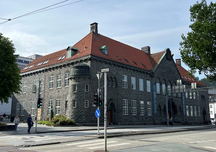Arbeidet på og inne i det delvis fredede Hovedbiblioteket er snart ferdig. (Foto: Bergen kommune)