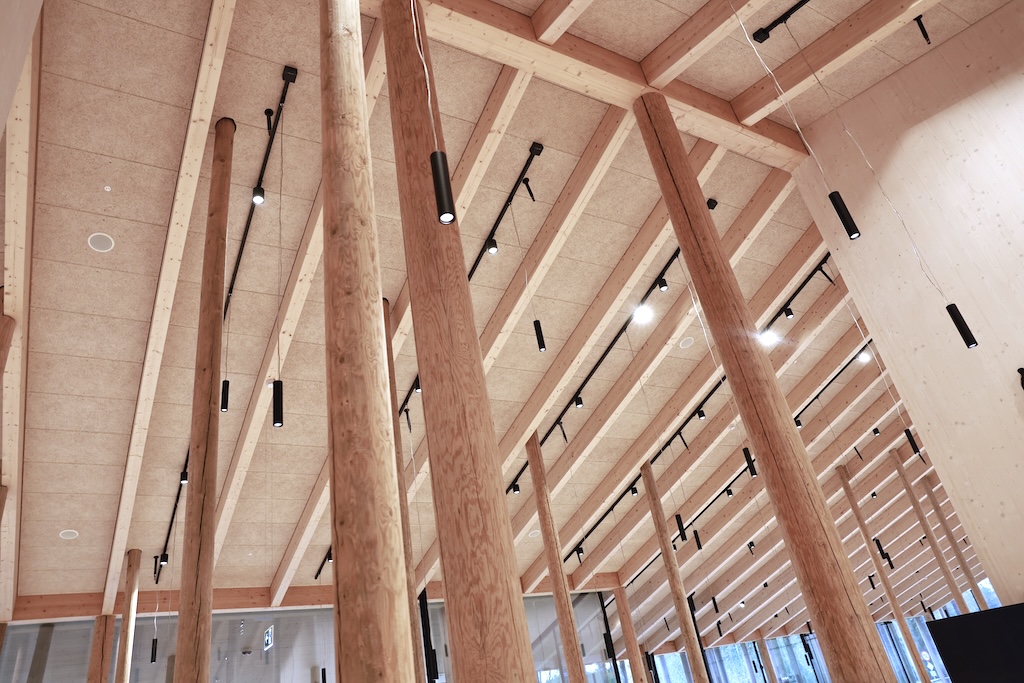 – Vi har brukt massivtre også i himlinger og søyler. Det gir et helhetlig uttrykk og en varm akustikk, forteller Nykänen.