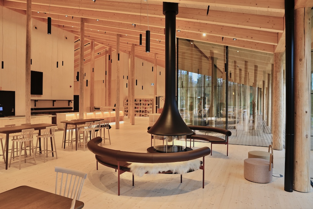 – Det massivt grangulvet og søylene i tømmer skaper et helhetlig uttrykk. Alt er synlig håndverk. Vi ville at publikum skulle se konstruksjonen og skjønne hvordan det er bygd, sier Nykänen.