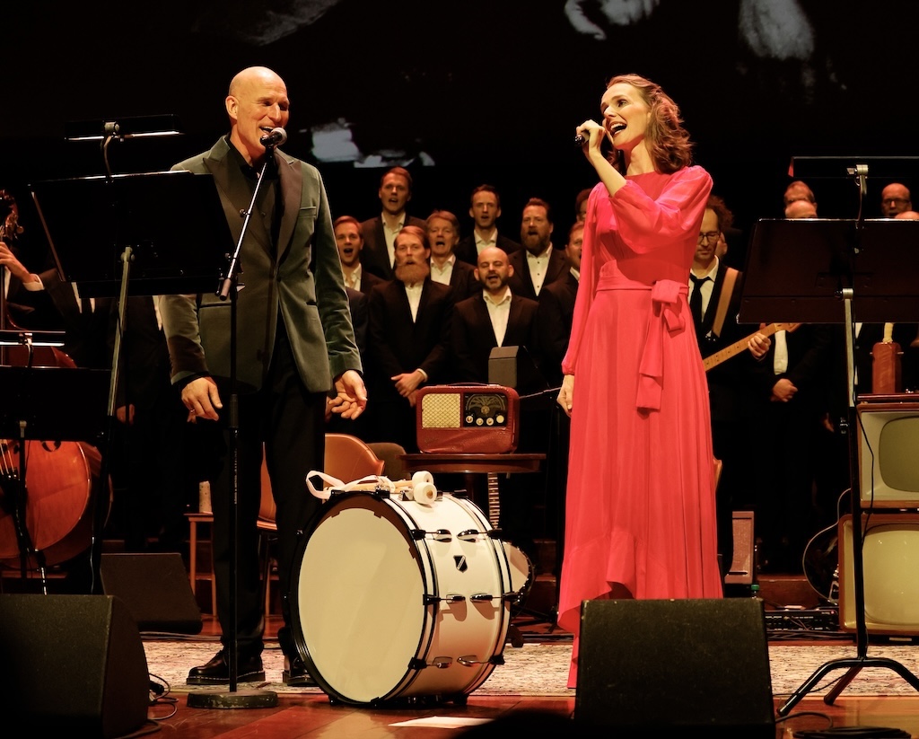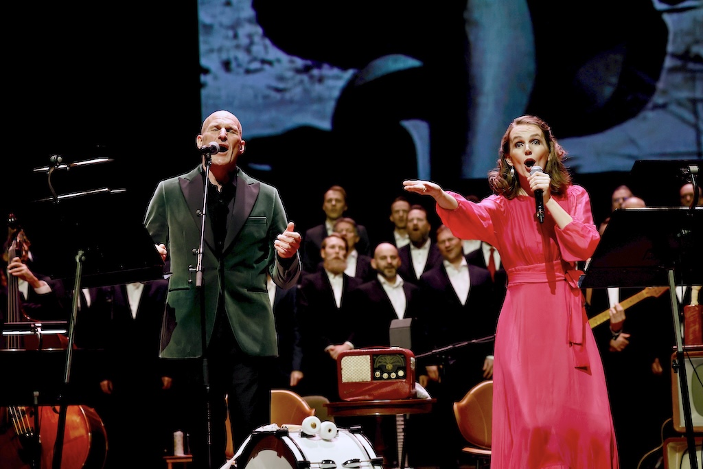 Avslutningen av jubileumskonserten blir rungende allsang med alle i salen, Vålerenga Mannskor og trampeklapp.