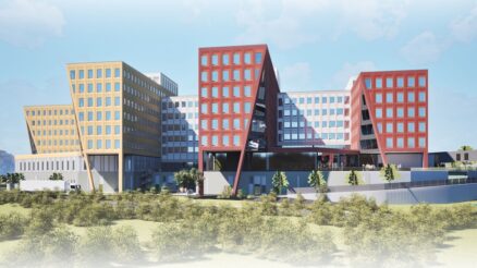 Den rundt 25 000 kvadratmeter store fasaden produseres av Optimera-eide Woodfab som prefabrikkerte ytterveggelementer på om lag 7 x 4 meter. Elementene leveres komplette med vinduer og kledning i Rockpanel og aluminiumsplater.