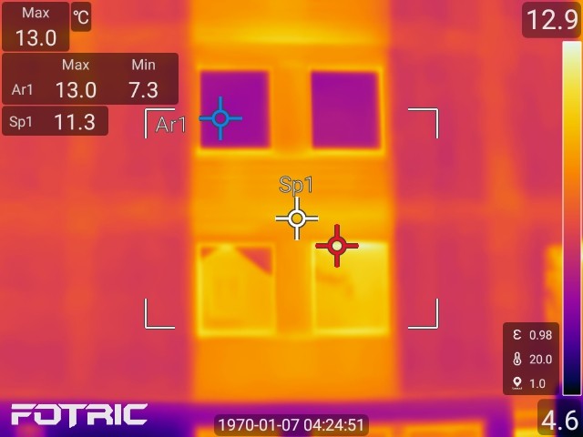 Termobilde av varmetap fra vindu før oppgraderingen.